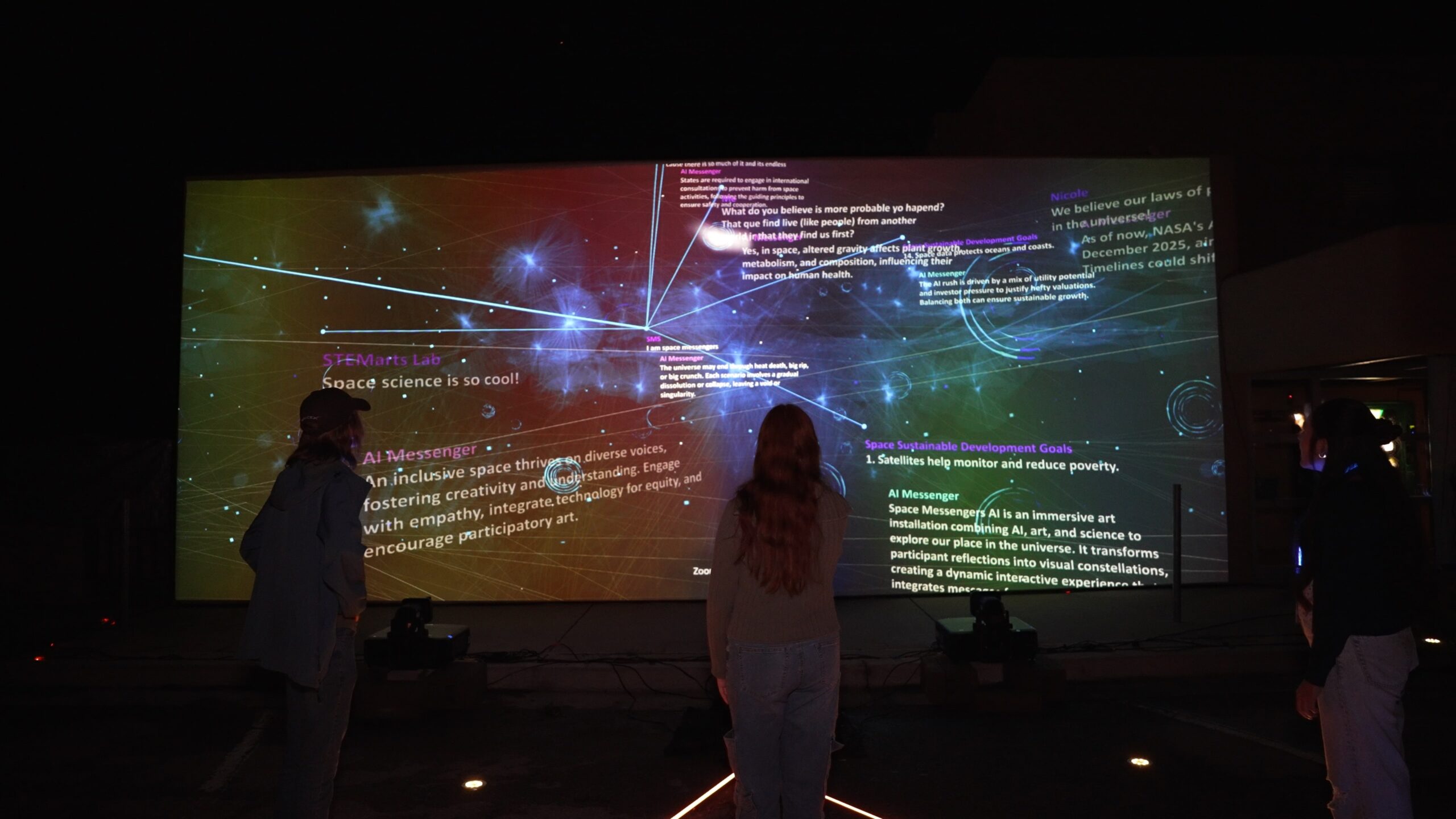 SPACE MESSENGERS A.I. Explore Space Messengers AI: an immersive installation that offers a glimpse into an international, community-driven project—brought to life through light, sound, motion, and responsive AI. PAST EVENTS  Â